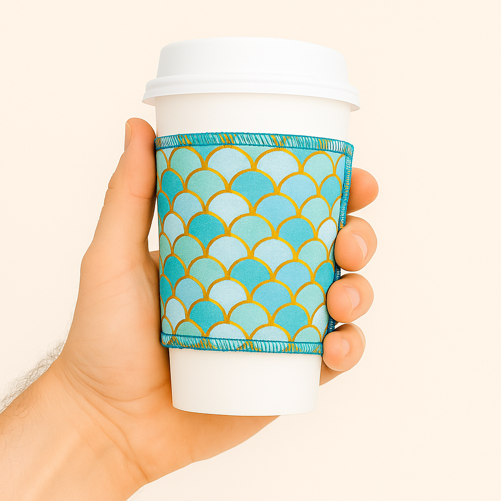 The Double-Layer Mermaid Cup Sleeve! The Mermaid drinkwear is one of our unique double-layer items. The Double-Layer Mermaid Cup Sleeve is created with a Mermaid cotton blend fabric and neoprene layers for a sleek touch and a beefy feel.