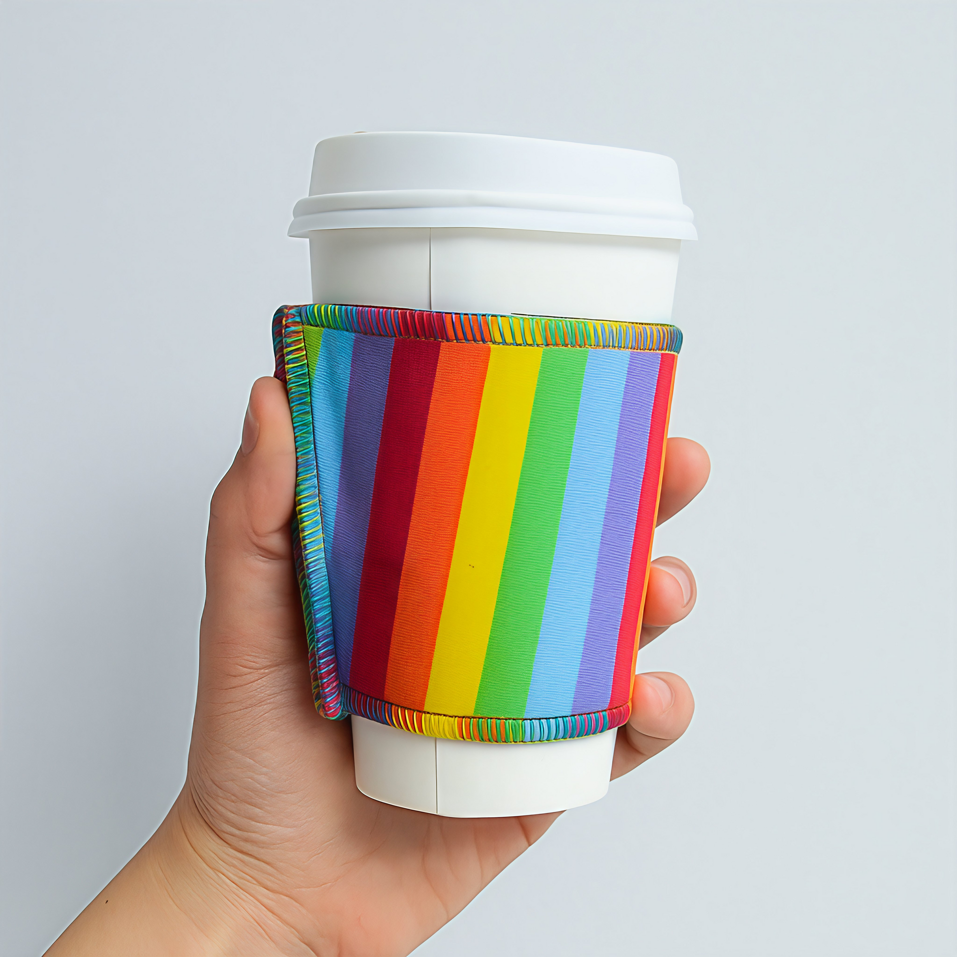 The double-layer Rainbow Drinkwear cup sleeve is a celebration of Pride month. Additionally, other older uses of rainbow flags include a symbol of peace.