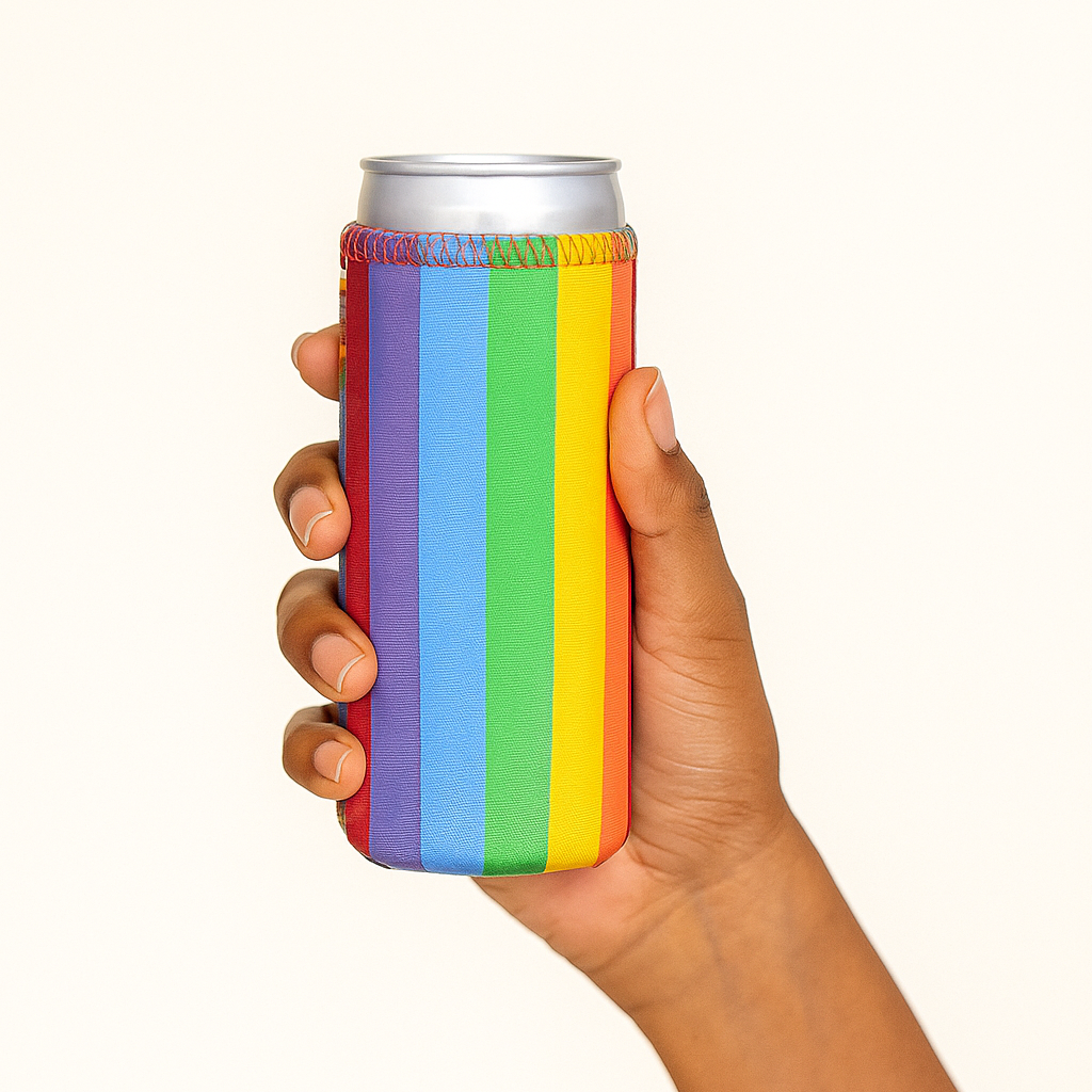 The double-layer Rainbow Drinkwear skinny is a celebration of Pride month. Additionally, other older uses of rainbow flags include a symbol of peace.
